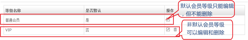系统默认会员等级:默认会员等级只能编辑,不能删除