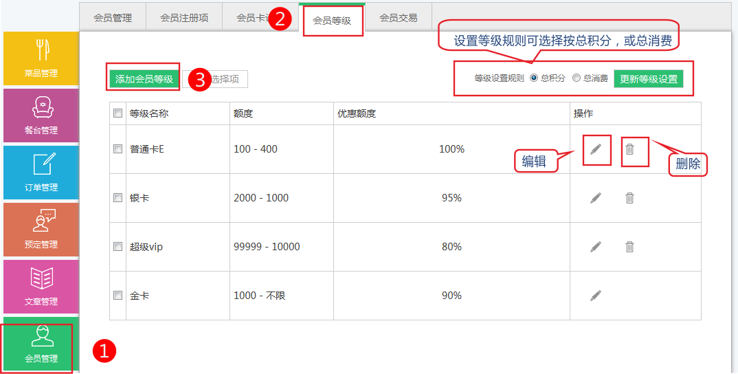 会员等级的添加和设置-微餐饮
