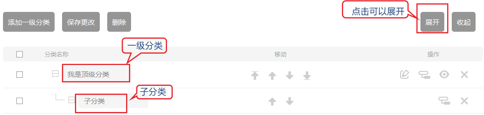 如果还有添加顶级分类 点击添加一级分类即可