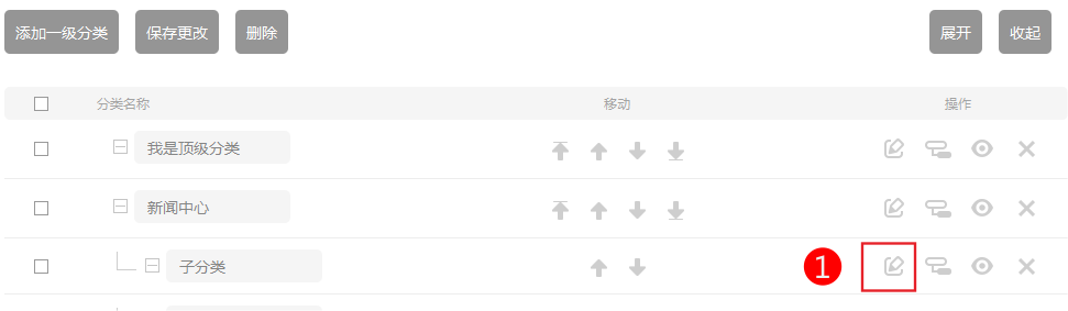 “编辑”:可修改分类名称,样式及其上级分类;